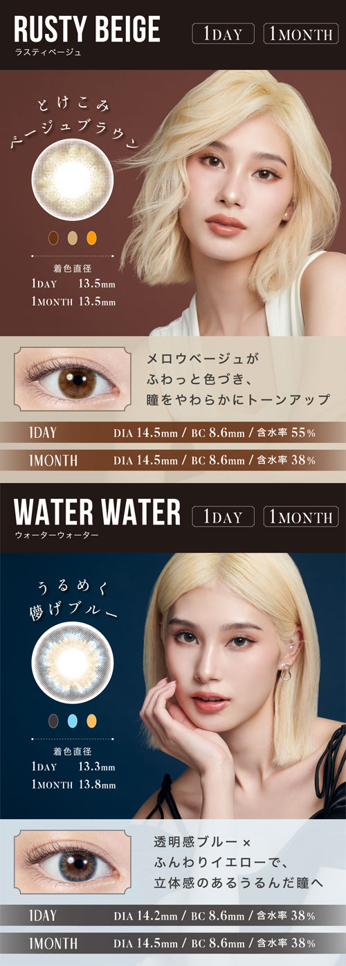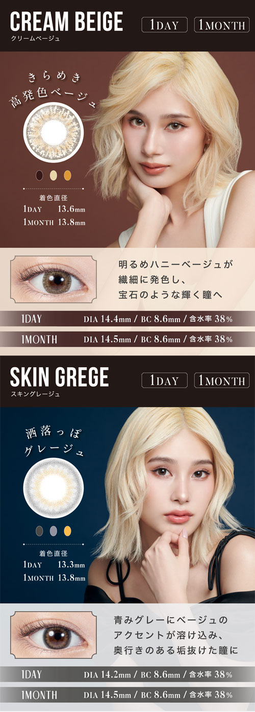 ◆DIA:14.2mm(ウォーターウォーター、スキンベージュ、スキングレージュ、ヌードチョコレート)、14.4mm(クリームベージュ、クリームグレージュ、チョコレート)