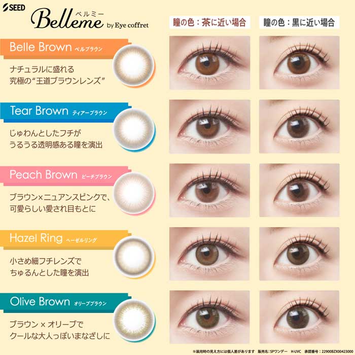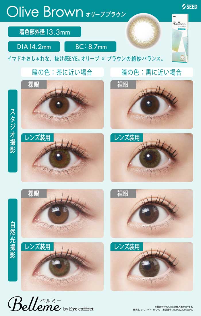 ◆着色直径:13.6mm、13.0mm(ヘーゼルリング)/13.3mm(オリーブブラウン)